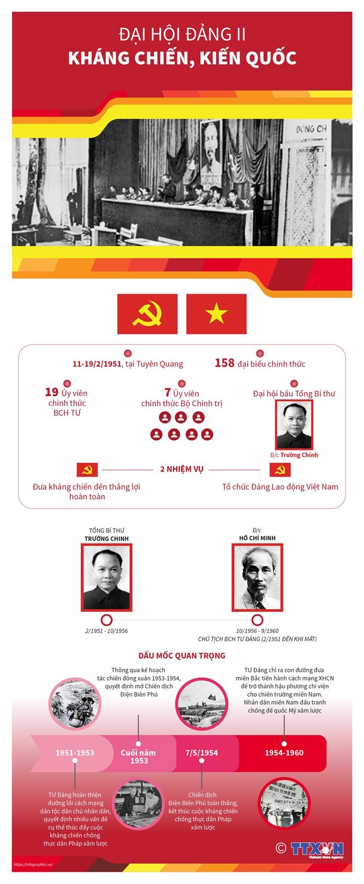 Nhiệm vụ chính: đưa cuộc kháng chiến chống Pháp đến thắng lợi hoàn toàn. Đại hội đại biểu toàn quốc lần thứ II của Đảng là một sự kiện lịch sử trọng đại đánh dấu bước trưởng thành mới về tư tưởng, đường lối chính trị của Đảng. Đảng ra công khai hoạt động với tên gọi mới là Đảng Lao động Việt Nam, có cương lĩnh, đường lối, chính sách đúng đắn phù hợp với thực tiễn của đất nước có ý nghĩa quyết định đưa kháng chiến tiến lên giành những thắng lợi ngày càng lớn.