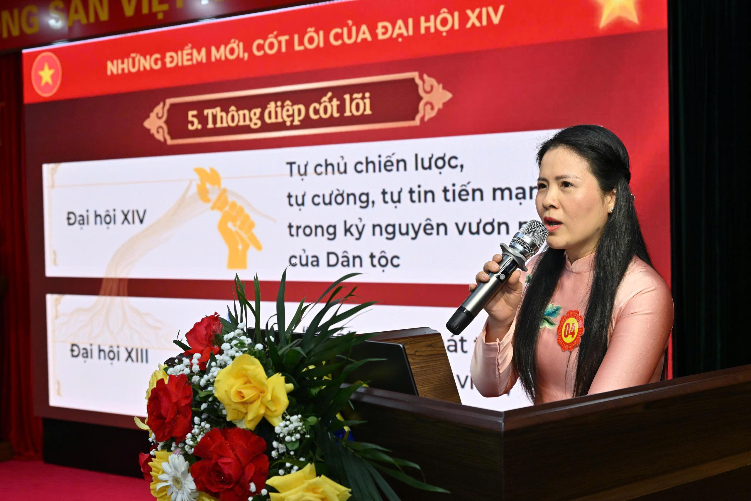 Điểm nhấn của Hội thi năm nay là cách tiếp cận mới: không dừng lại ở việc truyền đạt nội dung nghị quyết, mà tập trung liên hệ chặt chẽ với thực tiễn hoạt động sản xuất kinh doanh, chuyển hóa lý luận thành hành động cụ thể.